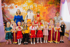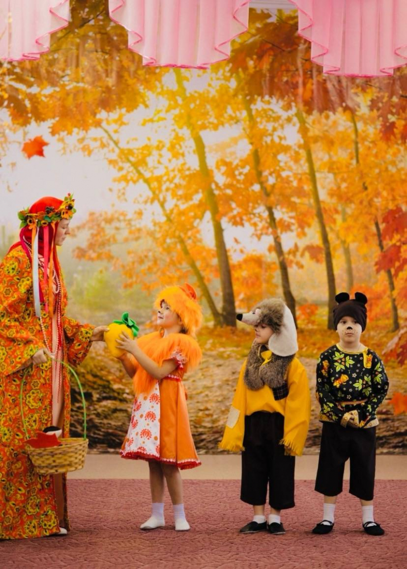 К детям в гости приходила красавица Осень, украсившая зал яркими листьями и осенними фруктами. Ее визит стал настоящим событием, полным улыбок и весеслья!